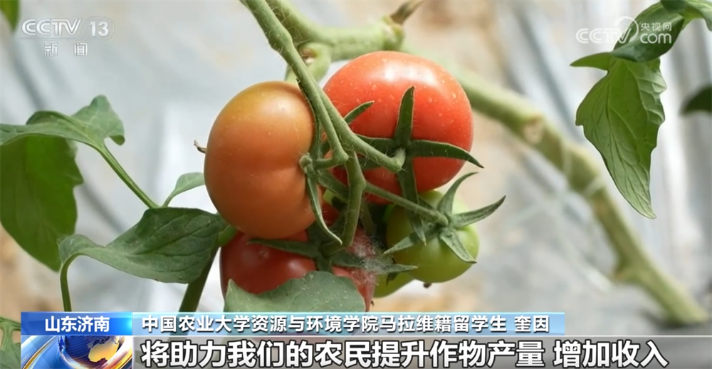 这两位非洲姑娘是中国农业大学资本取学院的留学生,今天她们除了学操控无人机,还要进修无机种植手艺。正在这个西红柿大棚里,种植全程不施农药,只用木醋液和腐植酸水溶肥养护土壤,结出的西红柿果肉丰满、甜度高,产量还比保守种植高20%。